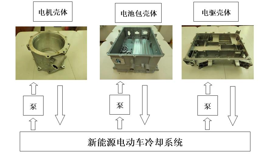 新能源汽車“三電系統(tǒng)”在工作時(shí),會(huì)產(chǎn)生大量的熱量,需要及時(shí)將熱量排出,保持“三電系統(tǒng)”尤其是電機(jī)、電池包、電控系統(tǒng)在正常溫度以內(nèi)。通常情況下,車廠會(huì)在殼體內(nèi)設(shè)計(jì)復(fù)雜的水路,通過冷水介質(zhì)將熱量循環(huán)帶出,使其達(dá)到恒溫狀態(tài)。
